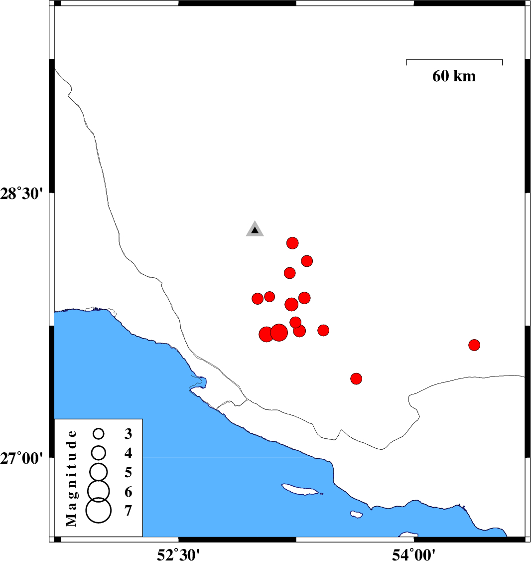 2020/08/25 14:14:53.4 18:44:53.4 27.91453.0812 ML3 Fars Province, 45 km North-East of Mehr