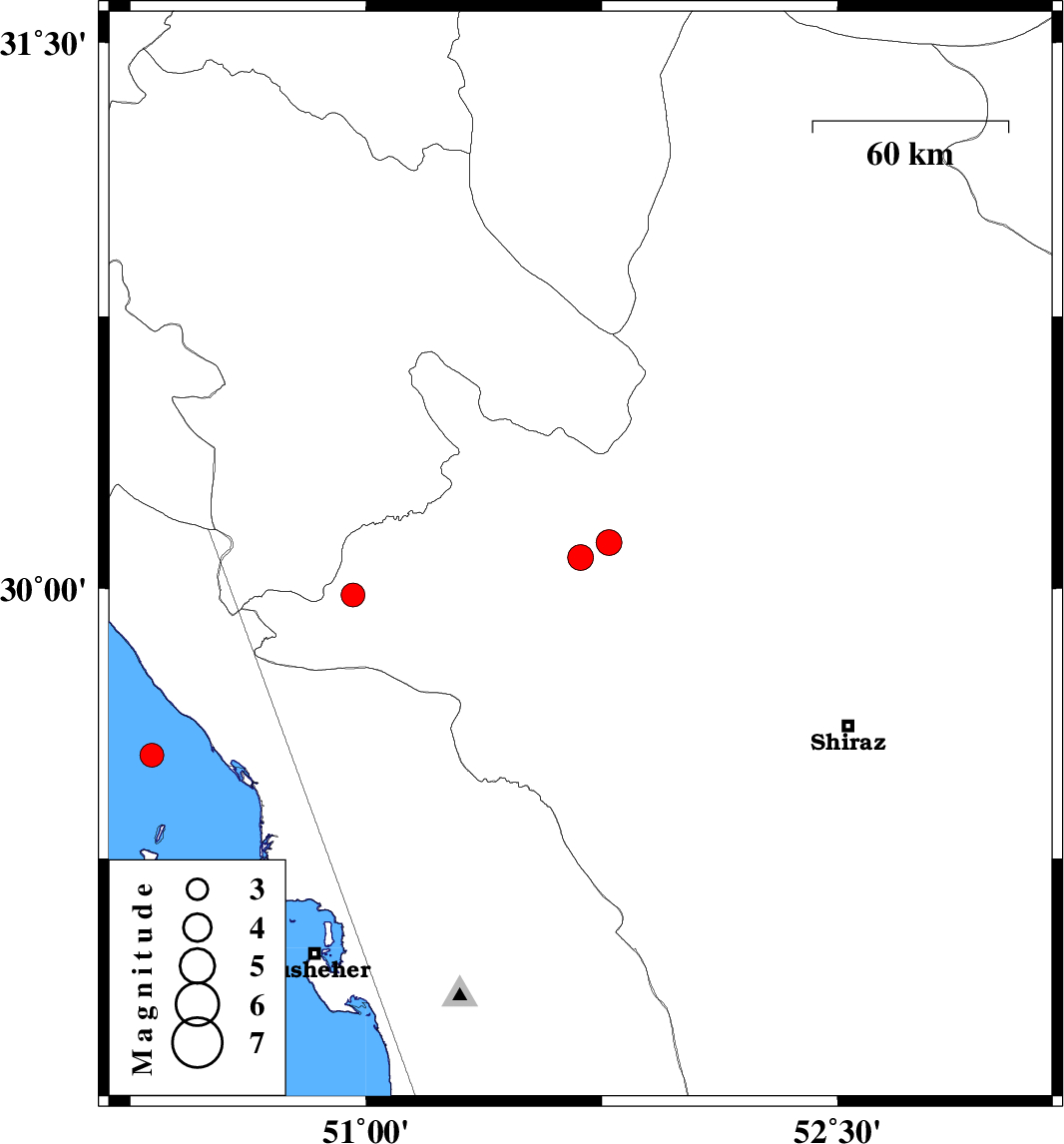 | 2024/06/18 | 06:11:35.6 | 09:41:35.6 | 29.537 | 50.318 | 12 | ML3.4 | Persian Gulf, 19 km -West of Bandar-e genaveh |