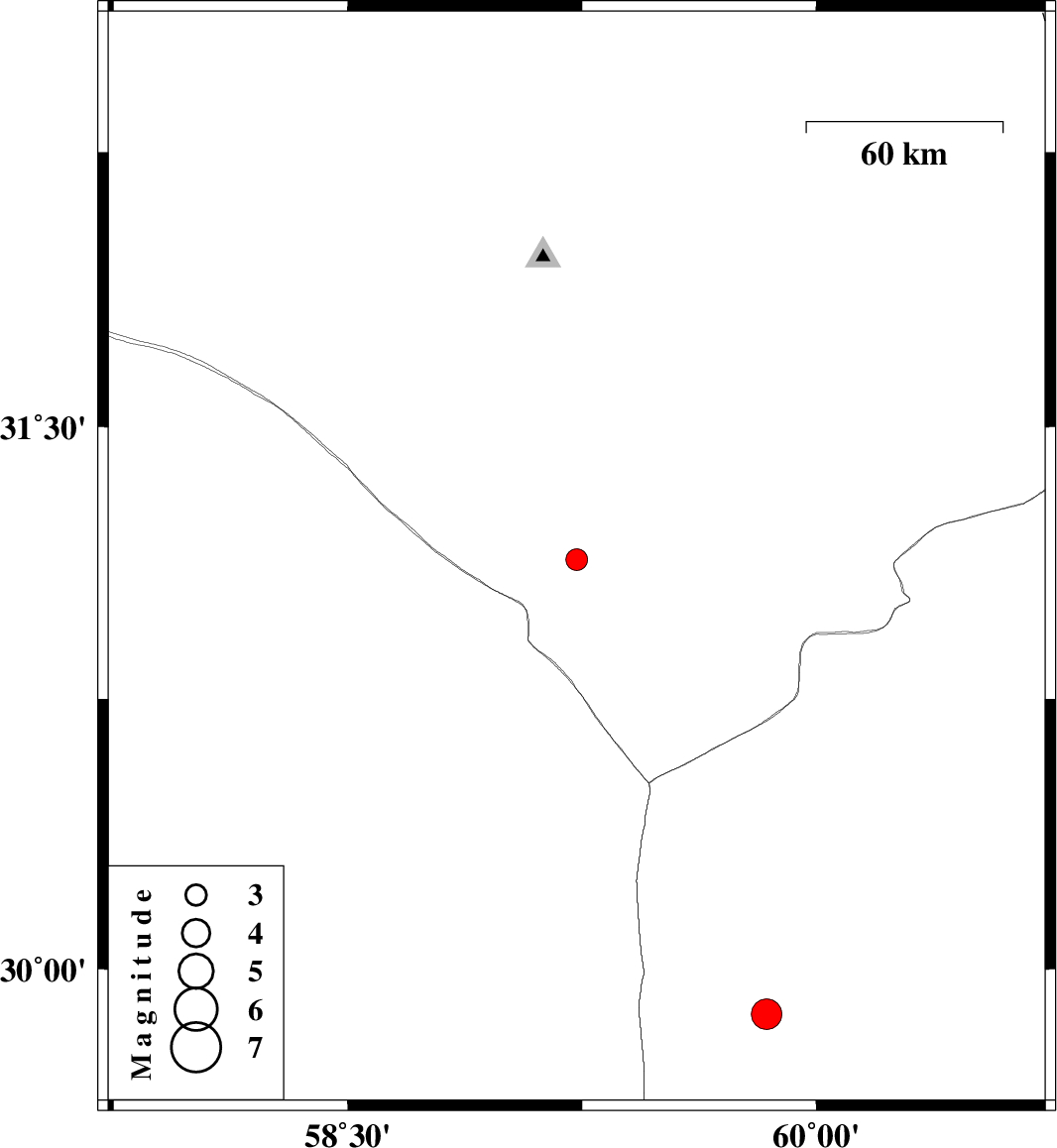 | 2024/06/18 | 23:25:09.5 | 02:55:09.5 | 29.873 | 59.841 | 10 | ML4.4 | Sistan va Baloochestan Province, 108 km North-West of Zahedan |