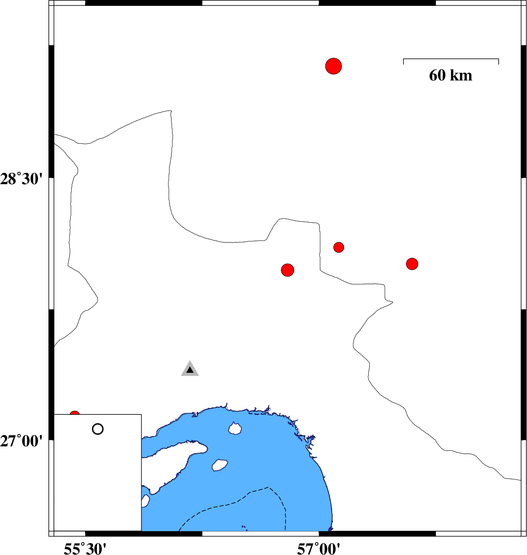 | 2024/07/17 | 20:02:41.0 | 23:32:41.0 | 27.974 | 56.798 | 24 | ML3.7 | Hormozgan Province, 88 km -West of Kahnuj | ||