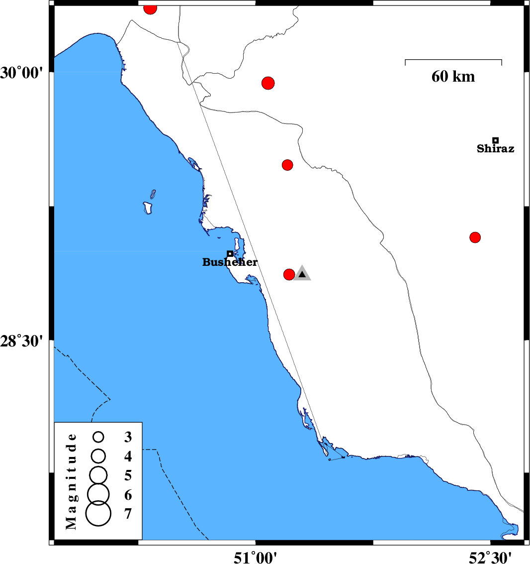 | 2024/07/21 | 21:50:42.2 | 01:20:42.2 | 28.868 | 51.214 | 12 | ML3.2 | Bushehr Province, 5 km of Ahram | ||