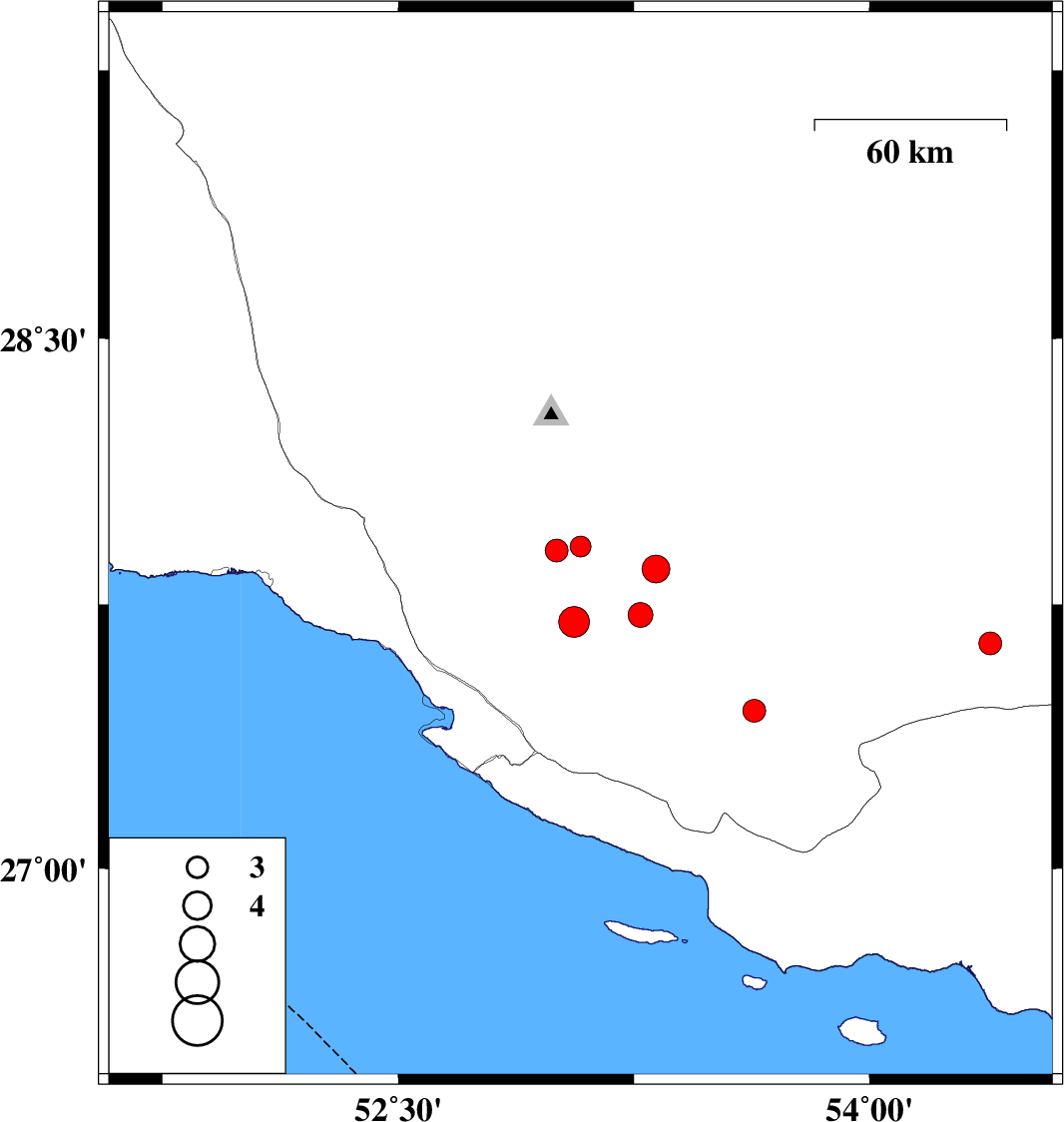| Prel. Rep. | Date | Time(UTC) | Time(Local) | Lat. | Lon. | Depth | Mag. | Region | Waveform |