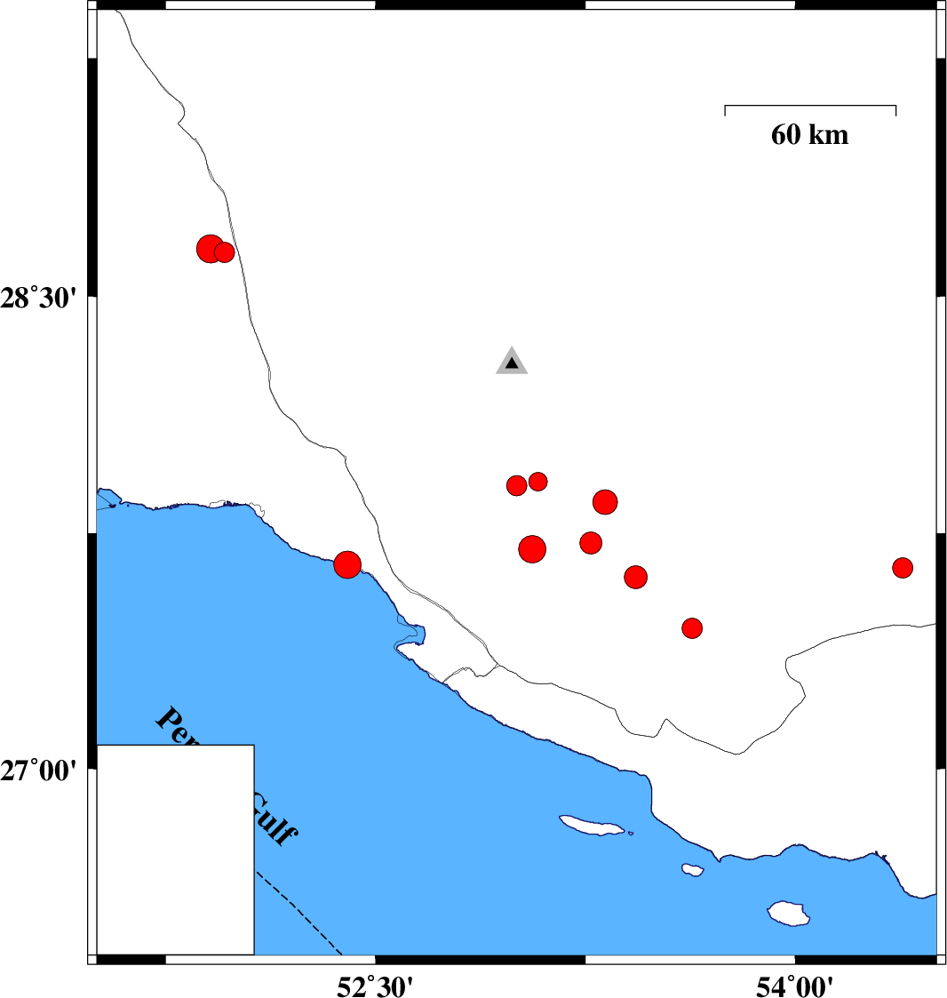 2020/08/25 14:14:53.4 18:44:53.4 27.91453.0812 ML3 Fars Province, 45 km North-East of Mehr