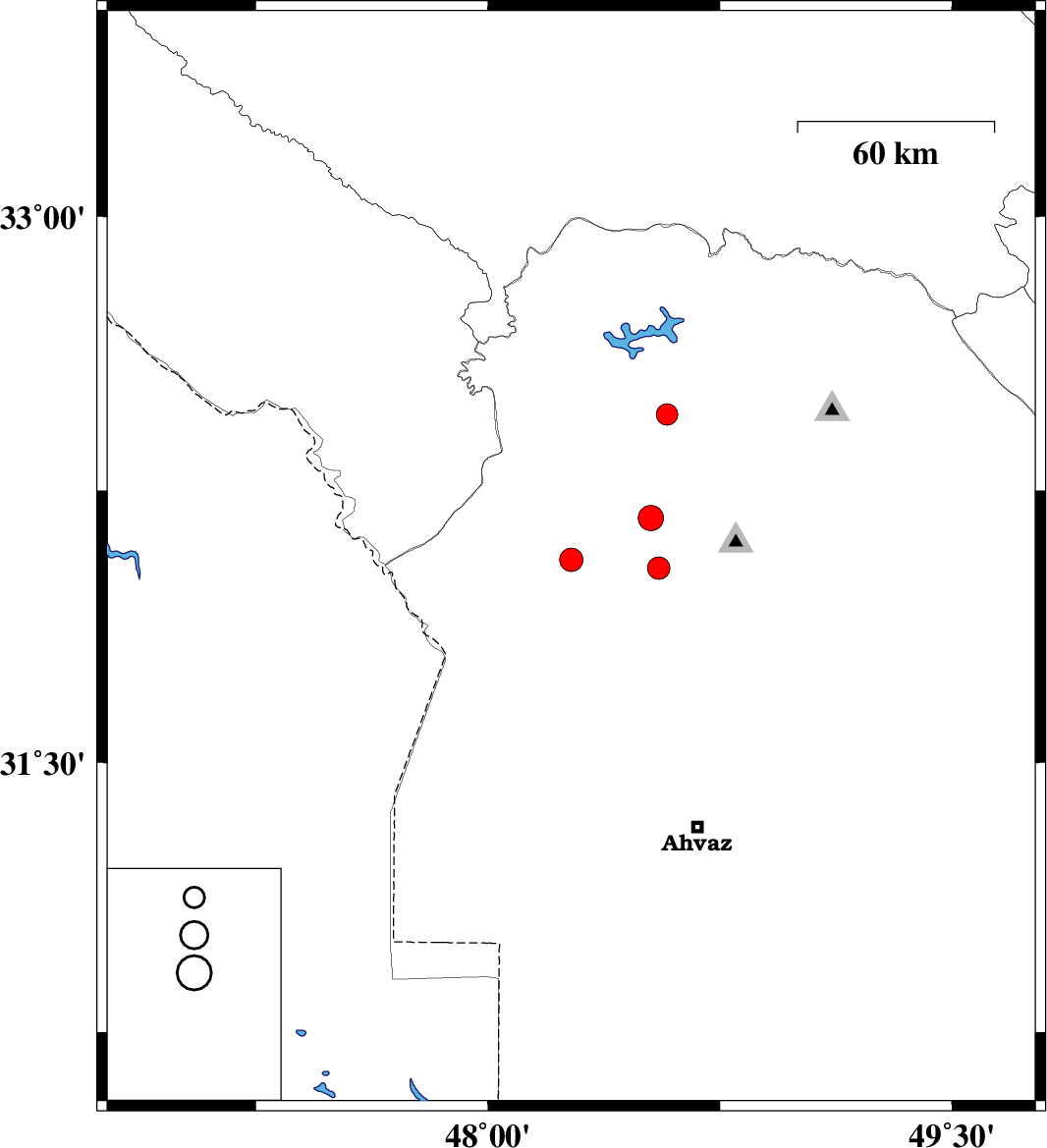 | 2024/09/02 | 19:20:10.8 | 22:50:10.8 | 32.459 | 48.579 | 12 | ML3.1 | Khoozestan Province, 21 km -East of Andimeshk | ||