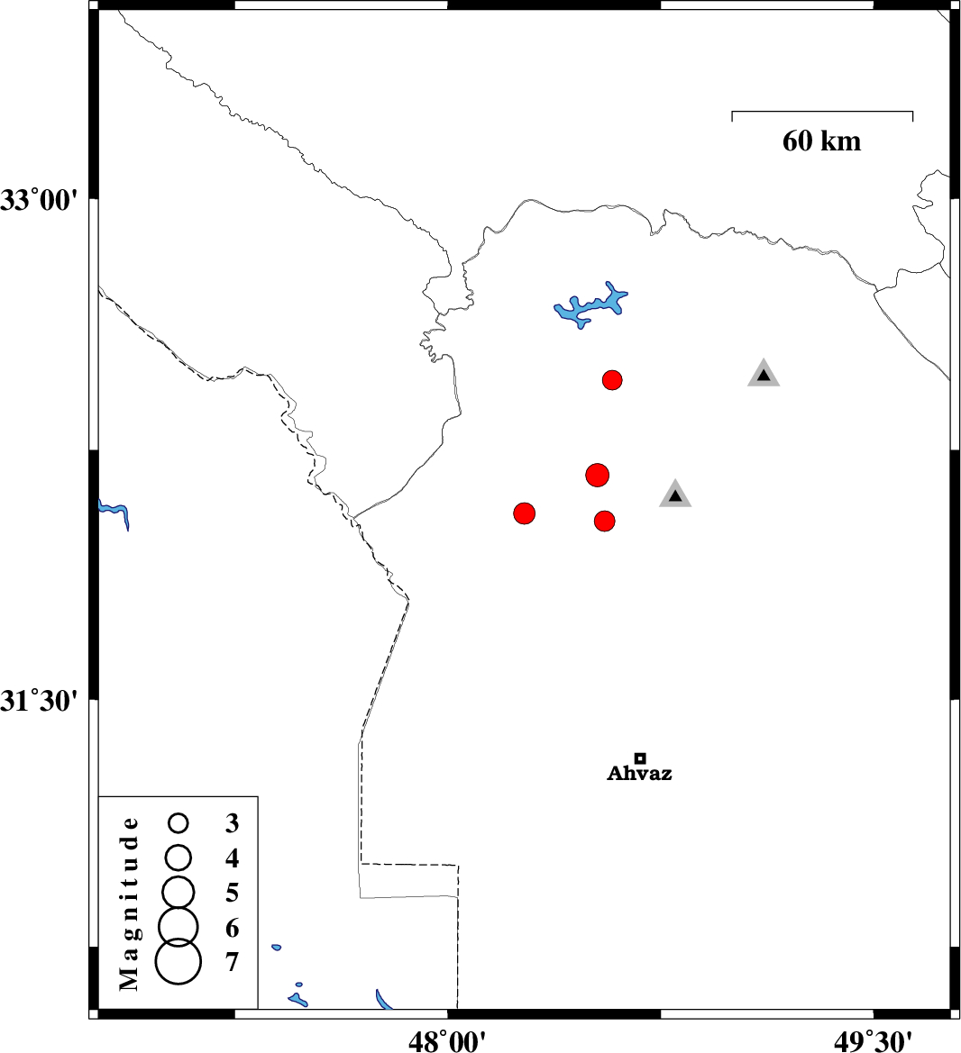| 2024/09/05 | 13:37:51.6 | 17:07:51.6 | 32.059 | 48.269 | 12 | ML3.4 | Khoozestan Province, 16 km South of Shush | ||