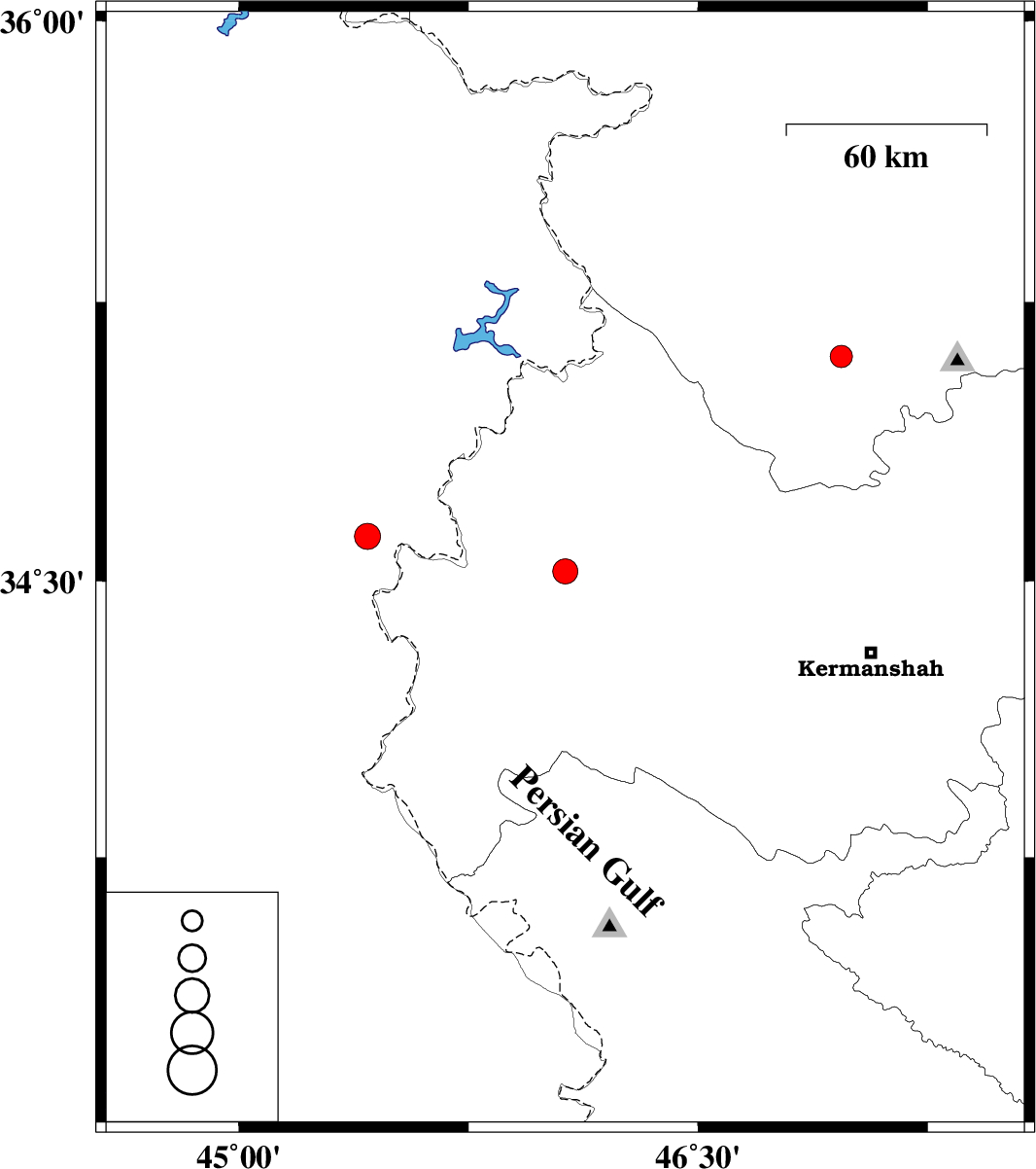| 2020/08/06 | 21:55:39.4 | 02:25:39.4 | 34.525 | 46.066 | 12 | ML3.6 | Kermanshah Province, 18 km -East of Sar-e pol-e zahab | ||