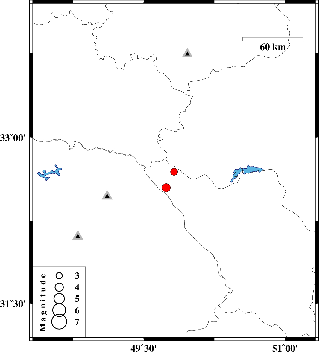| 2024/09/08 | 04:02:58.3 | 07:32:58.3 | 32.548 | 49.74 | 12 | ML3.9 | Chaharmahal Bakhtiari Province, 37 km -West of Chelgard |