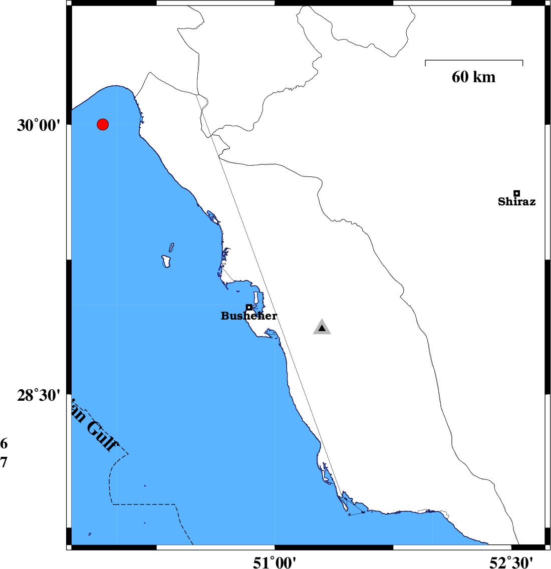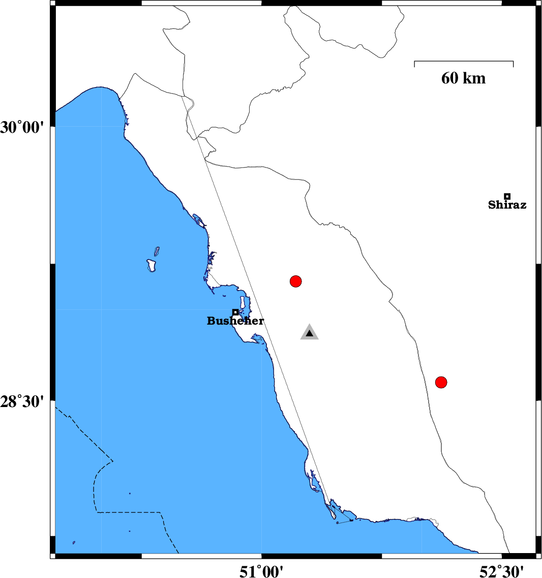 | 2020/07/21 | 12:26:17.5 | 16:56:17.5 | 29.154 | 51.212 | 12 | ML3.3 | Bushehr Province, 12 km South of Borazjan | ||