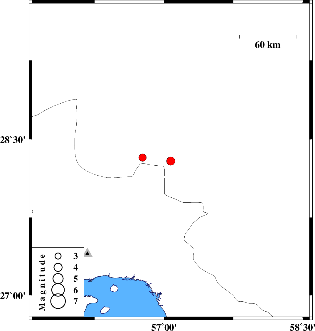 | 2024/09/20 | 20:38:45.5 | 00:08:45.5 | 28.325 | 56.769 | 12 | ML3.7 | Kerman Province, 85 km -East of Hajiabad |