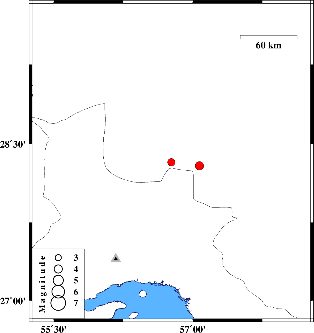 | 2024/09/20 | 20:38:45.5 | 00:08:45.5 | 28.325 | 56.769 | 12 | ML3.7 | Kerman Province, 85 km -East of Hajiabad |