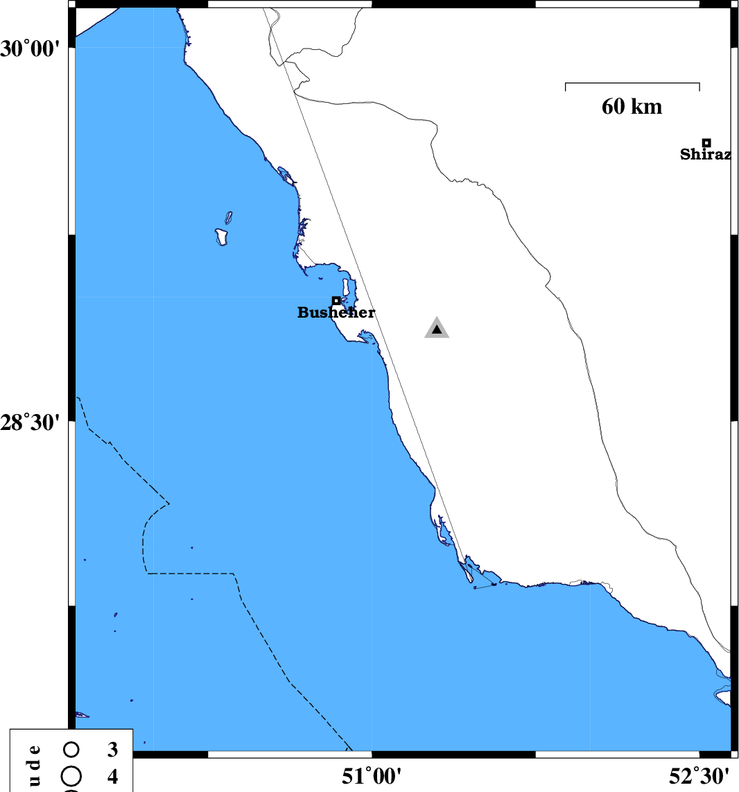 | 2024/09/21 | 09:48:10.3 | 13:18:10.3 | 28.658 | 51.143 | 16 | ML3.4 | Bushehr Province, 22 km -West of Khormog |