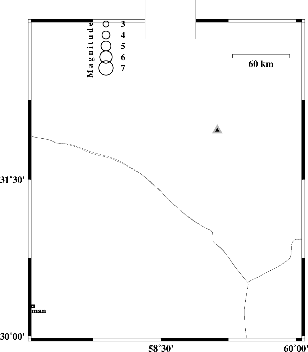 | 2024/10/02 | 20:08:15.6 | 23:38:15.6 | 30.402 | 57.538 | 12 | ML3 | Kerman Province, 46 km North-East of Kerman | ||