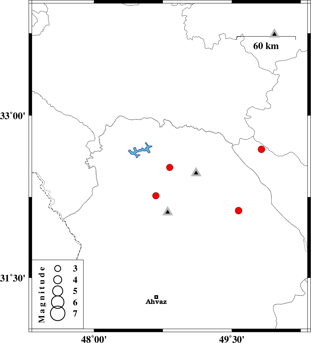 | 2024/10/11 | 10:38:42.2 | 14:08:42.2 | 32.261 | 48.674 | 12 | ML3.2 | Khoozestan Province, 29 km South-East of Dezful | ||