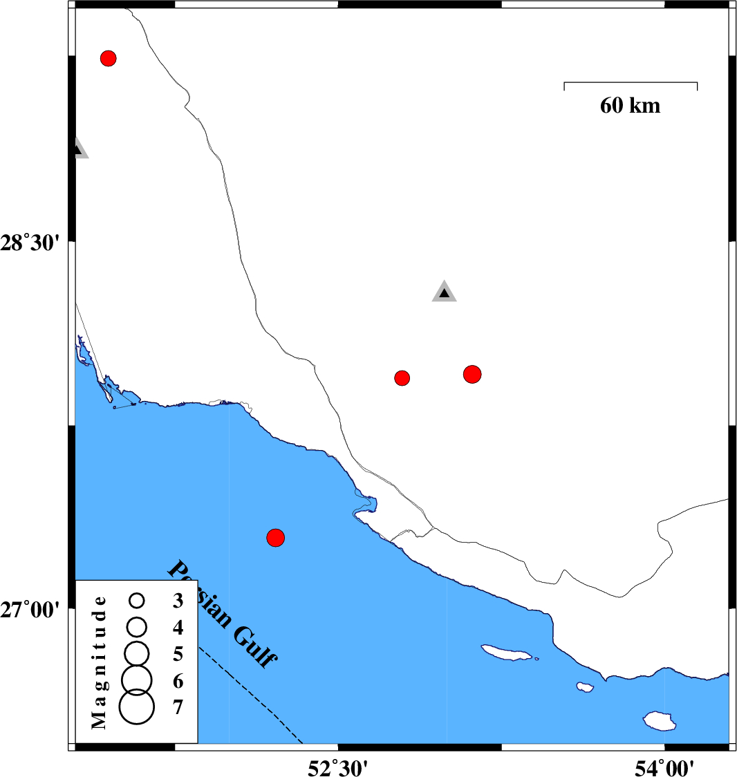 | 2024/10/09 | 04:45:41.9 | 08:15:41.9 | 27.943 | 52.793 | 12 | ML3.1 | Fars Province, 45 km North of Mehr | ||