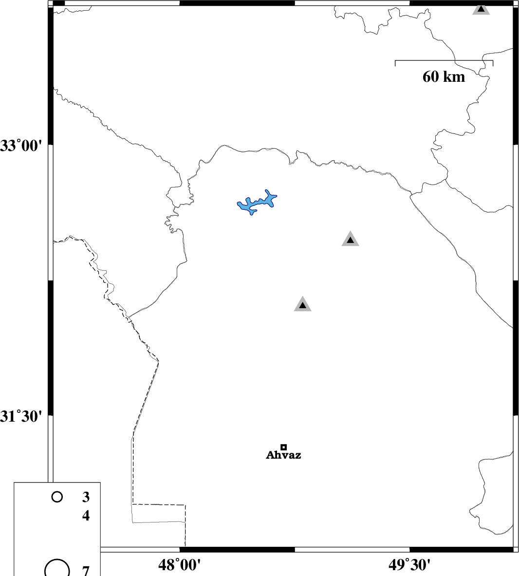 | 2024/10/11 | 10:38:42.2 | 14:08:42.2 | 32.261 | 48.674 | 12 | ML3.2 | Khoozestan Province, 29 km South-East of Dezful | ||