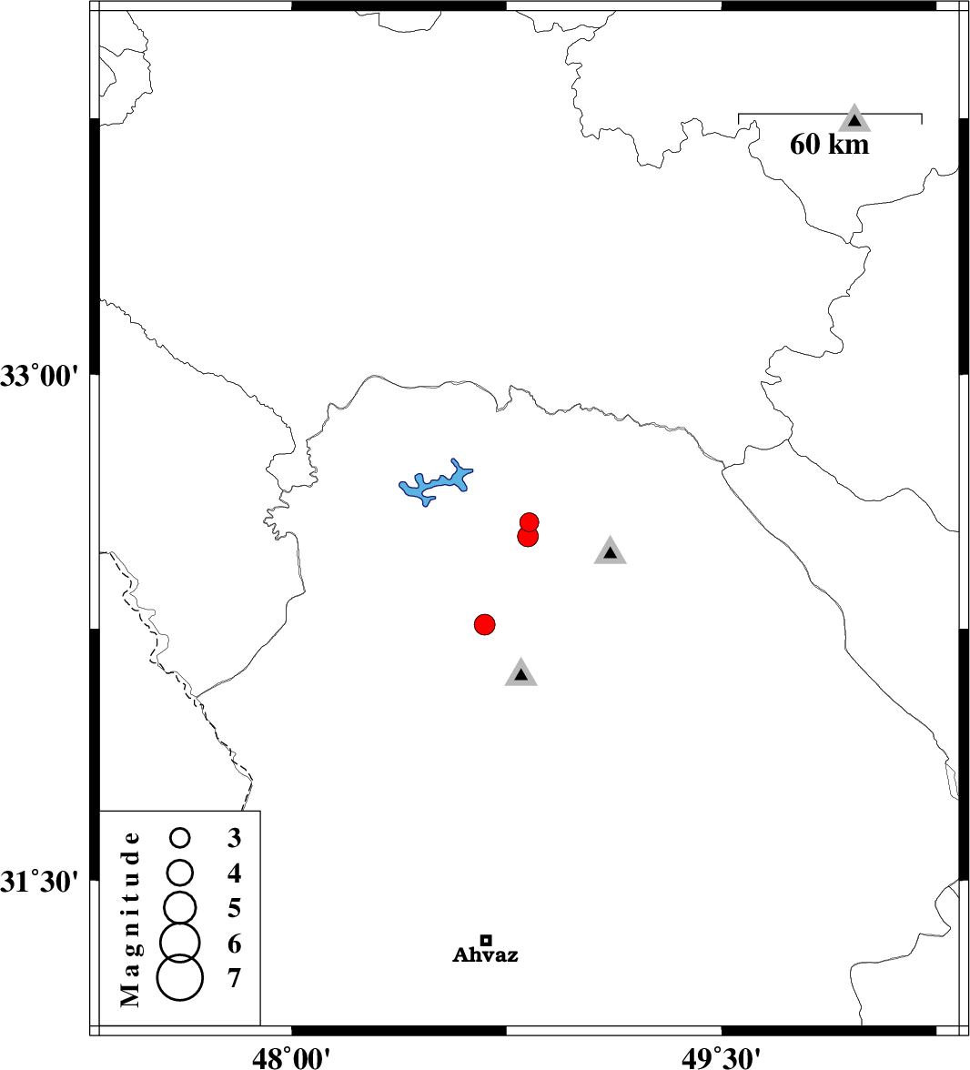 | 2024/10/11 | 10:38:42.2 | 14:08:42.2 | 32.261 | 48.674 | 12 | ML3.2 | Khoozestan Province, 29 km South-East of Dezful |