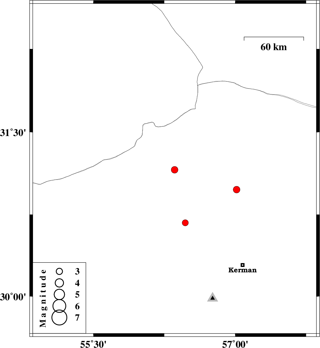 | 2024/10/22 | 13:08:55.8 | 16:38:55.8 | 31.158 | 56.359 | 7 | ML3.2 | Kerman Province, 43 km North-West of Zarand | ||