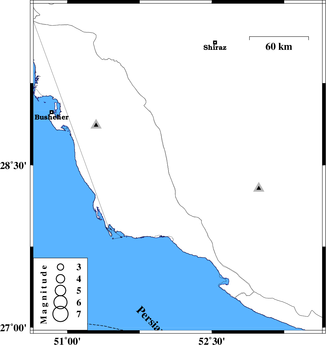 | 2024/10/24 | 00:38:42.3 | 04:08:42.3 | 28.474 | 52.147 | 12 | ML4.7 | Fars Province, 45 km South of Farashband |