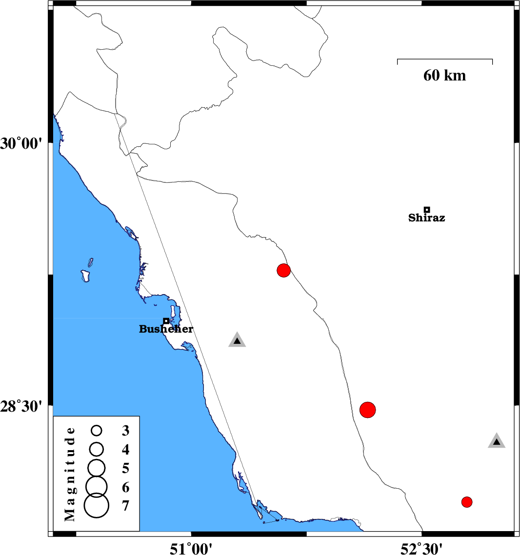 | 2024/10/09 | 04:45:41.9 | 08:15:41.9 | 27.943 | 52.793 | 12 | ML3.1 | Fars Province, 45 km North of Mehr |