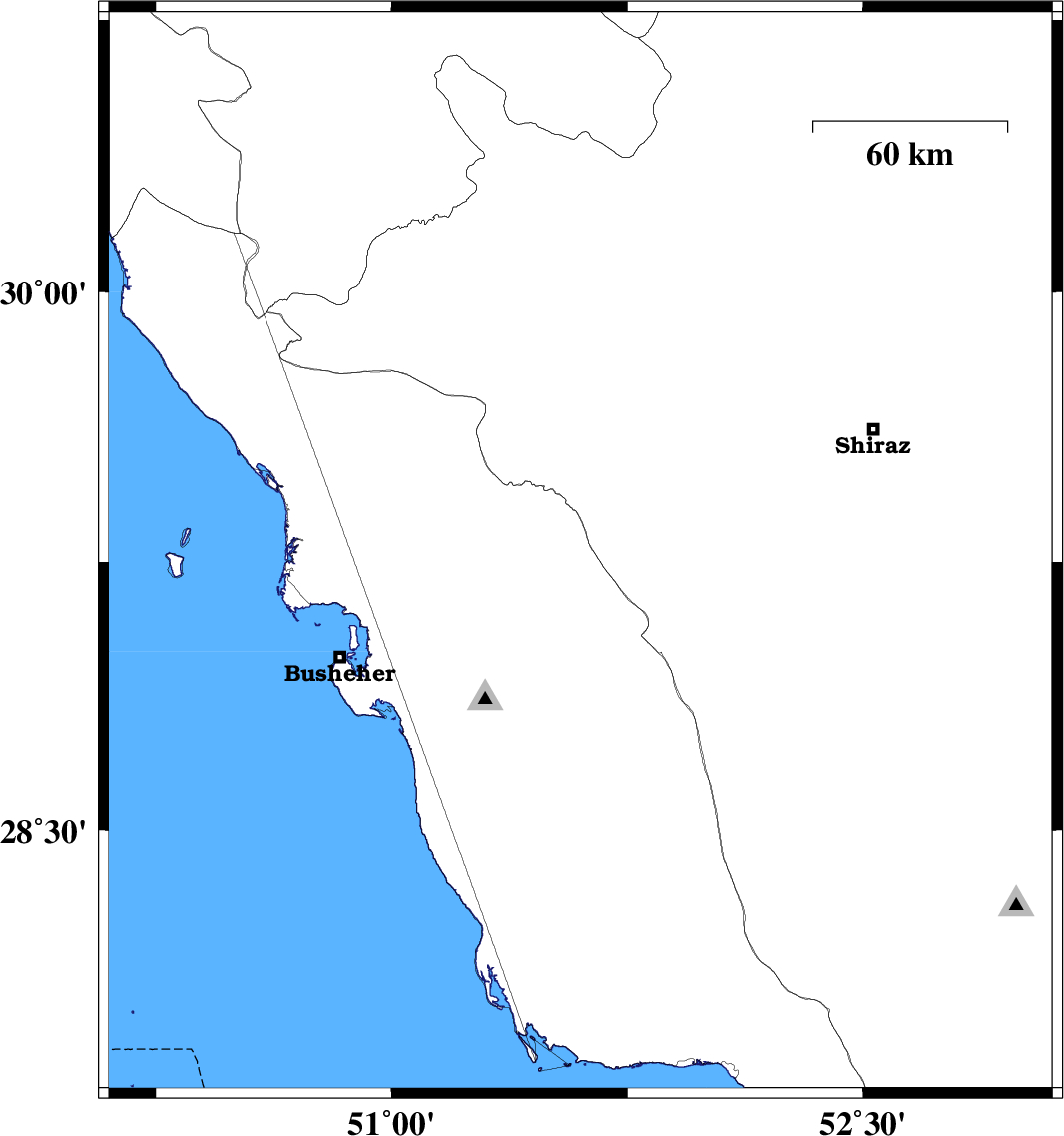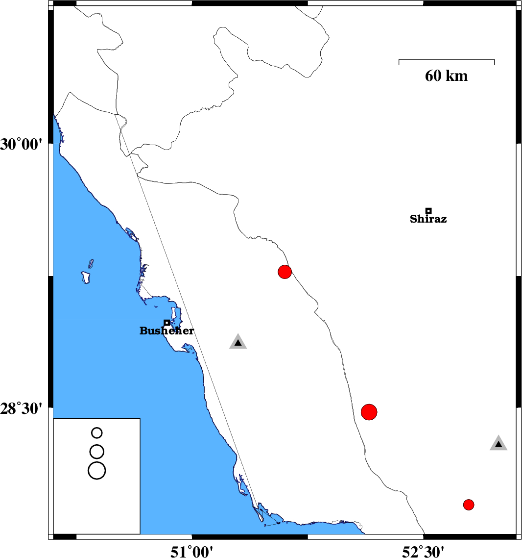 | 2024/10/26 | 17:08:18.1 | 20:38:18.1 | 29.273 | 51.601 | 12 | ML4 | Bushehr Province, 39 km South of Kazerun | ||