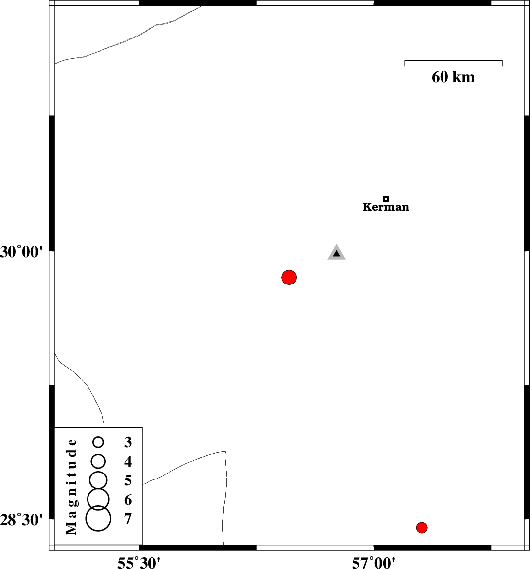 | 2024/11/02 | 07:40:52.9 | 11:10:52.9 | 28.451 | 57.305 | 12 | ML3.1 | Kerman Province, 49 km South-West of Jiroft |