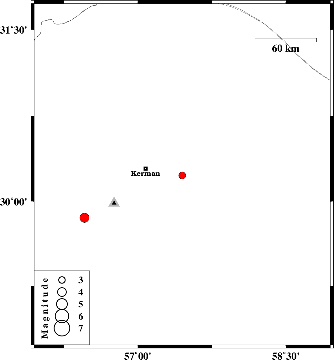 | 2024/11/05 | 03:40:31.3 | 07:10:31.3 | 30.227 | 57.45 | 10 | ML3.3 | Kerman Province, 36 km -East of Kerman | ||