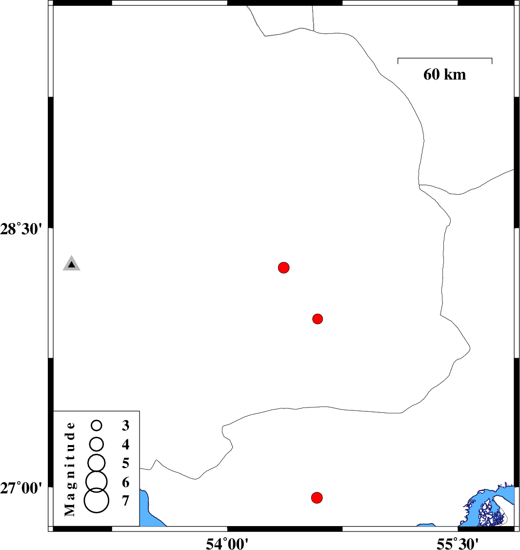 | 2024/11/12 | 05:58:08.3 | 09:28:08.3 | 27.976 | 54.588 | 17 | ML3 | Fars Province, 41 km North-East of Lar | ||