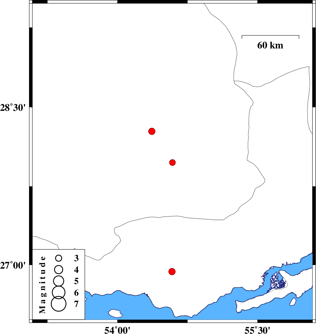 2024/11/12 05:58:08.3 09:28:08.3 27.97654.58817 ML3 Fars Province, 41 km North-East of Lar