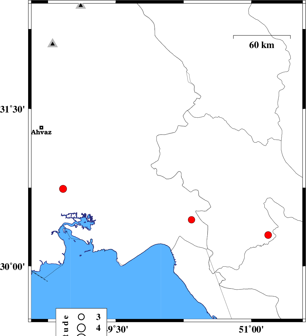 | 2024/11/28 | 21:59:51.6 | 01:29:51.6 | 31.284 | 48.645 | 14 | ML3.7 | Khoozestan Province, 5 km of Ahvaz |