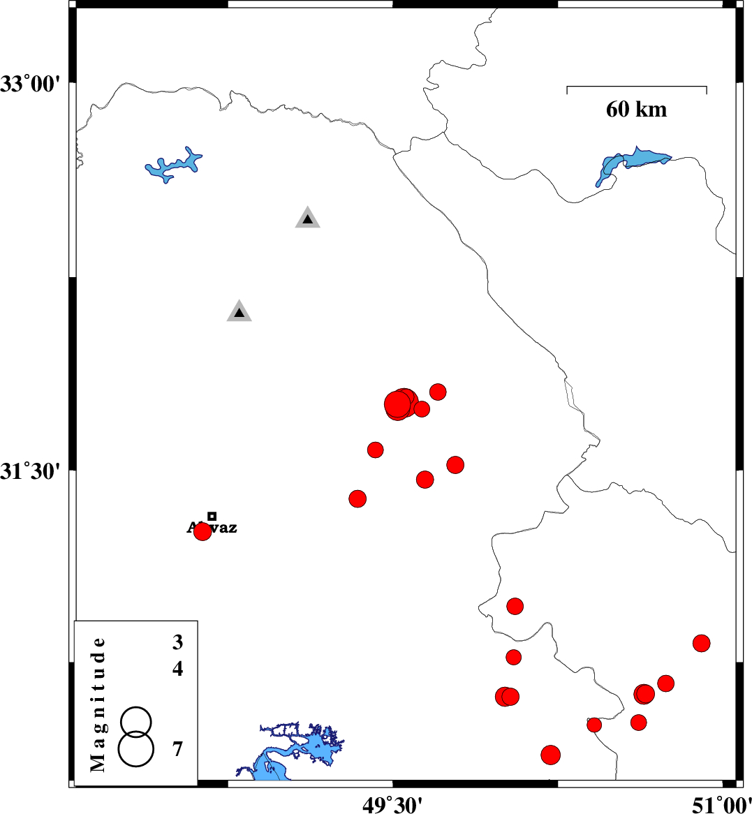 2024/11/08 07:07:18.8 10:37:18.8 30.63650.01912 ML3.9 Khoozestan Province, 22 km -West of Behbahan
