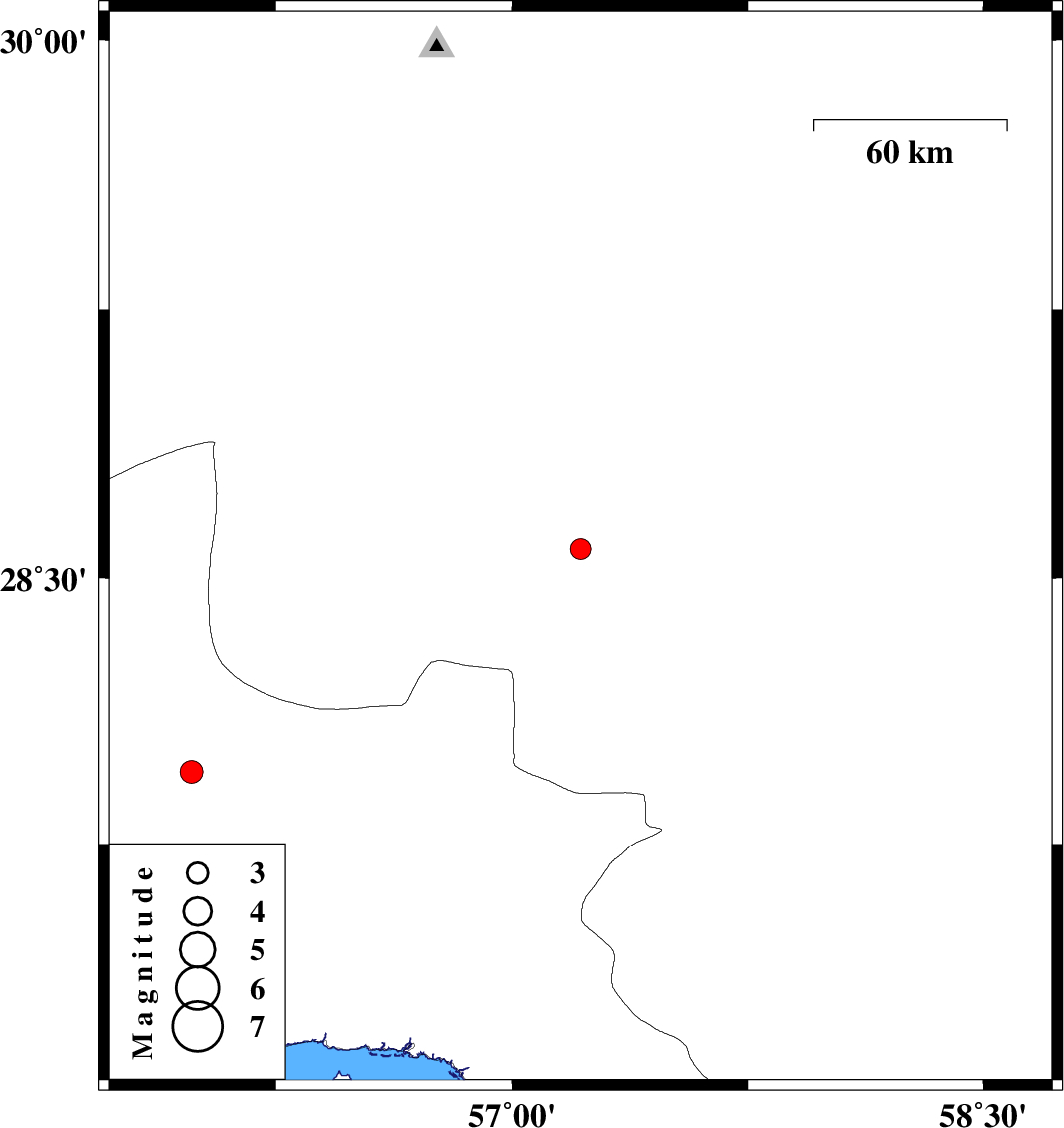 | 2024/12/05 | 03:23:21.1 | 06:53:21.1 | 28.581 | 57.218 | 12 | ML3 | Kerman Province, 52 km -West of Jiroft | ||