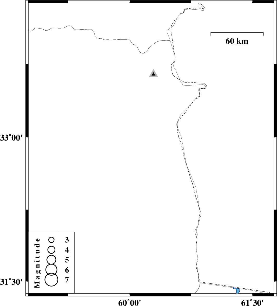 | 2024/12/20 | 23:31:40.2 | 03:01:40.2 | 32.874 | 60.262 | 12 | ML4.3 | Khorasan(south) Province, 52 km North-East of Sarbisheh |