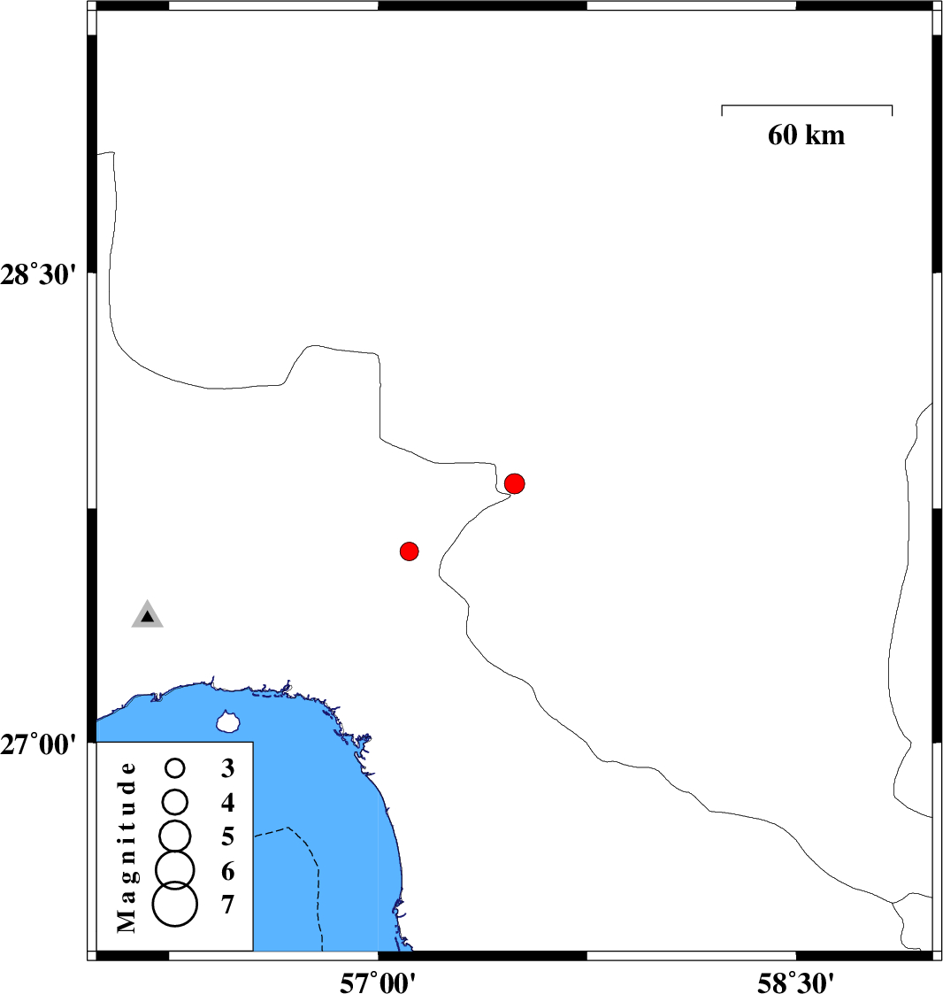 | 2024/12/18 | 23:07:56.2 | 02:37:56.2 | 27.828 | 57.489 | 12 | ML3.2 | Kerman Province, 24 km South-West of Kahnuj | ||