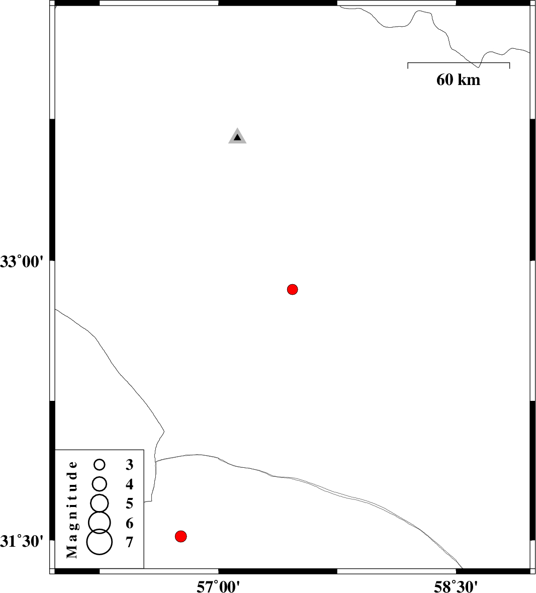| 2024/12/03 | 13:28:01.2 | 16:58:01.2 | 31.532 | 56.276 | 12 | ML3.2 | Kerman Province, 59 km North-West of Ravar |