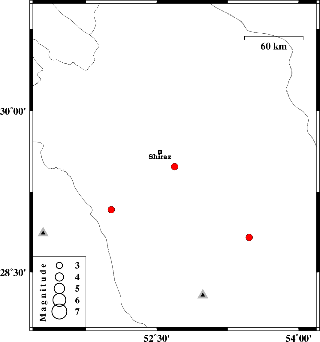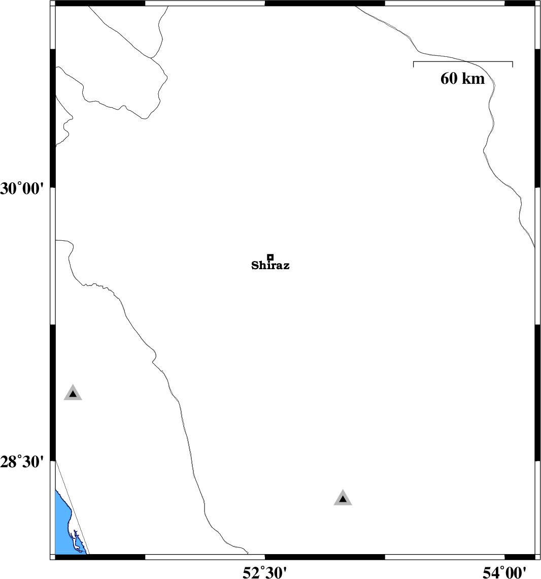 | 2024/12/25 | 15:28:06.9 | 18:58:06.9 | 29.483 | 52.688 | 12 | ML3.3 | Fars Province, 21 km South-East of Shiraz | ||