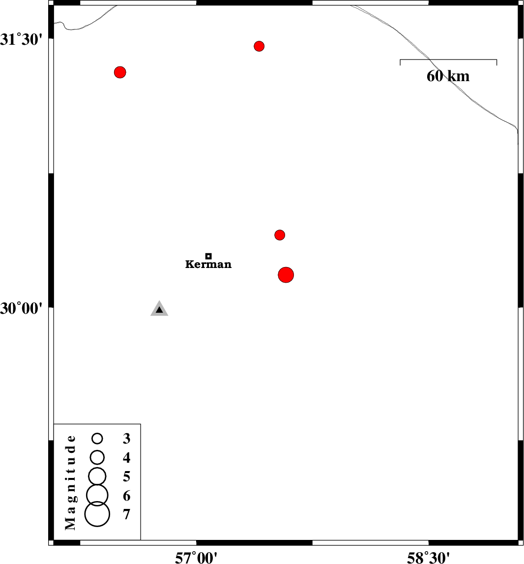 | 2024/12/26 | 08:33:20.3 | 12:03:20.3 | 31.456 | 57.405 | 10 | ML3 | Kerman Province, 60 km North-East of Ravar |