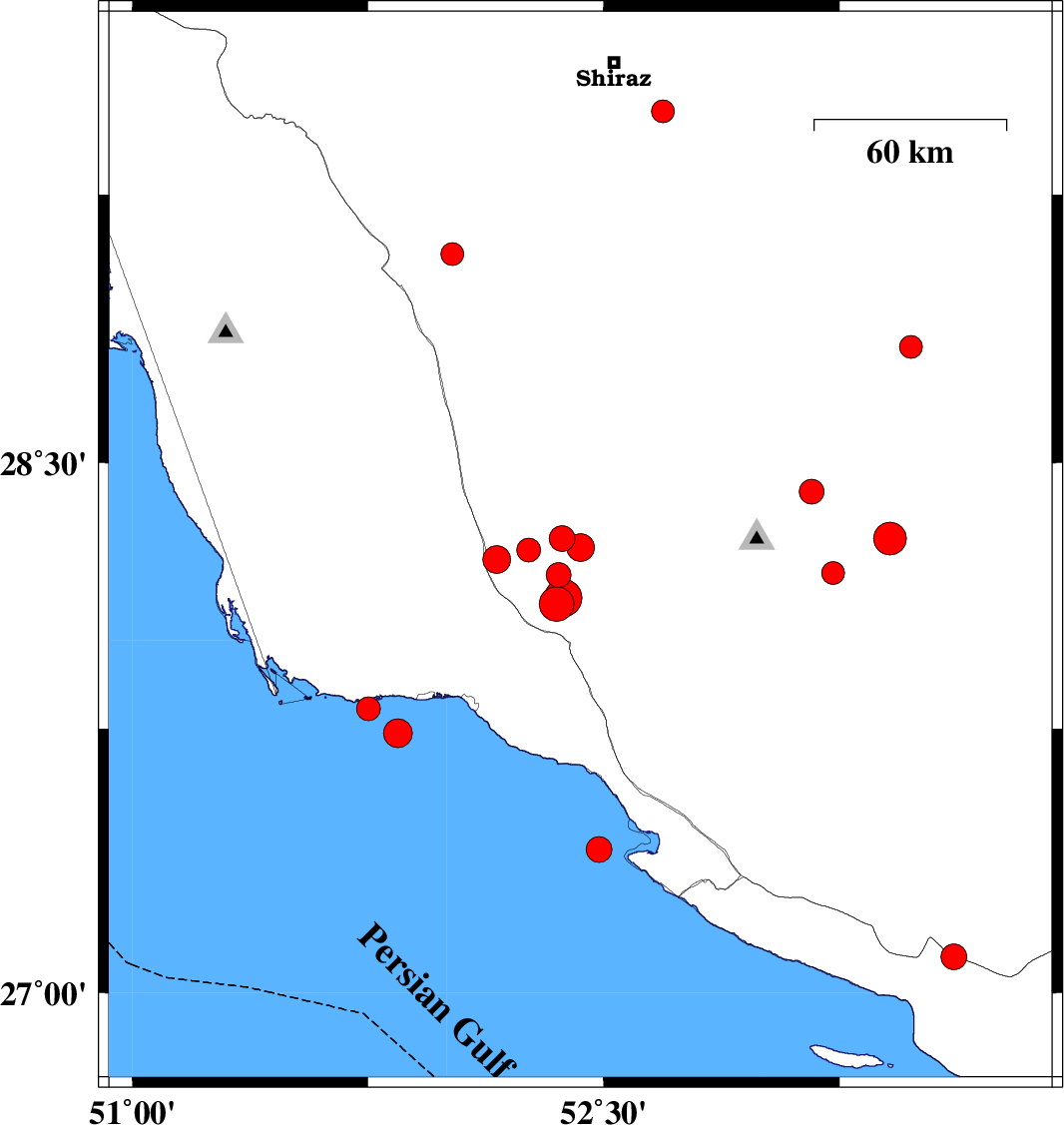 2024/12/25 15:28:06.9 18:58:06.9 29.48352.68812 ML3.3 Fars Province, 21 km South-East of Shiraz