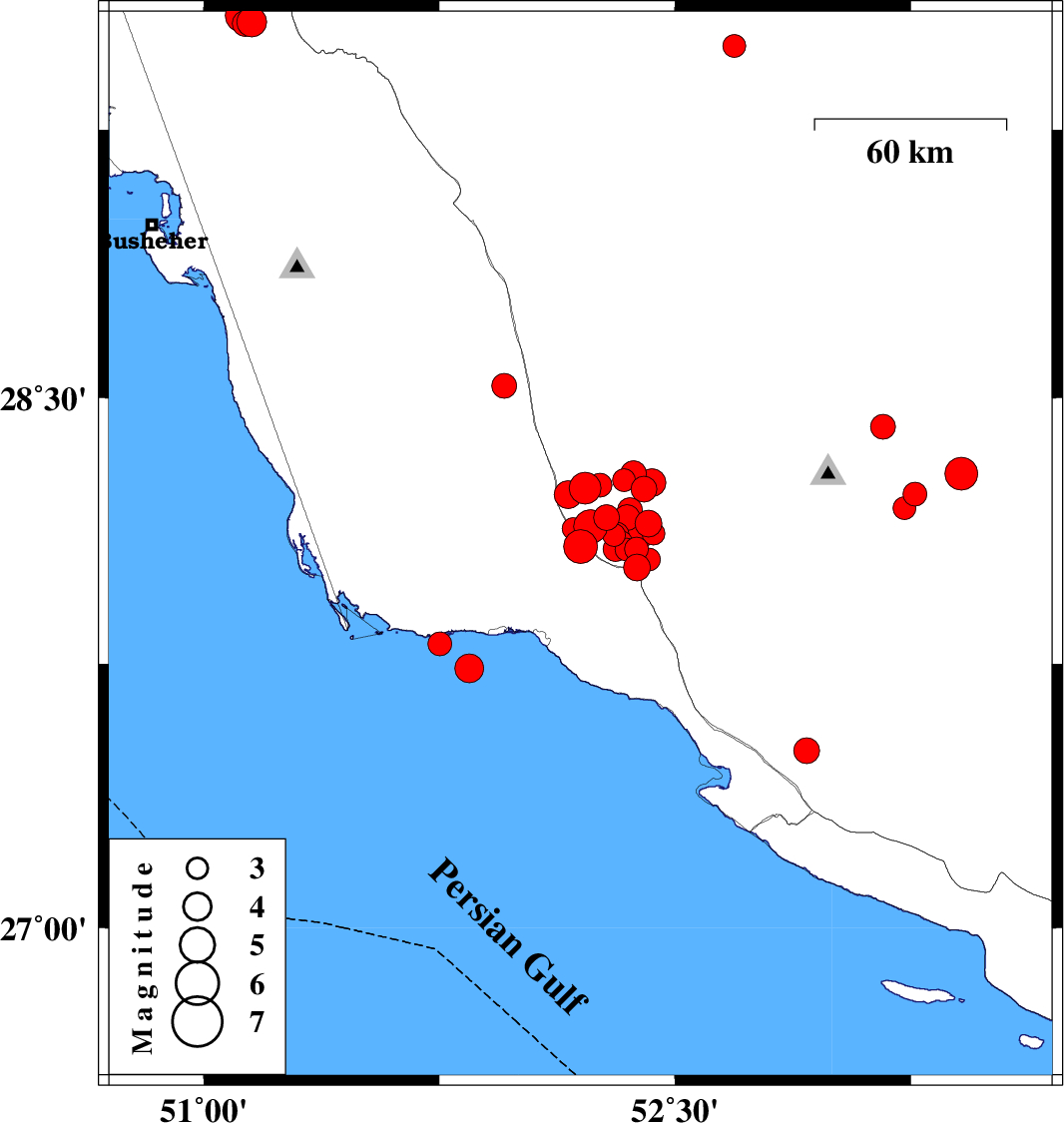 Persian Gulf, 30 km -West of Bandar-e kangan | |