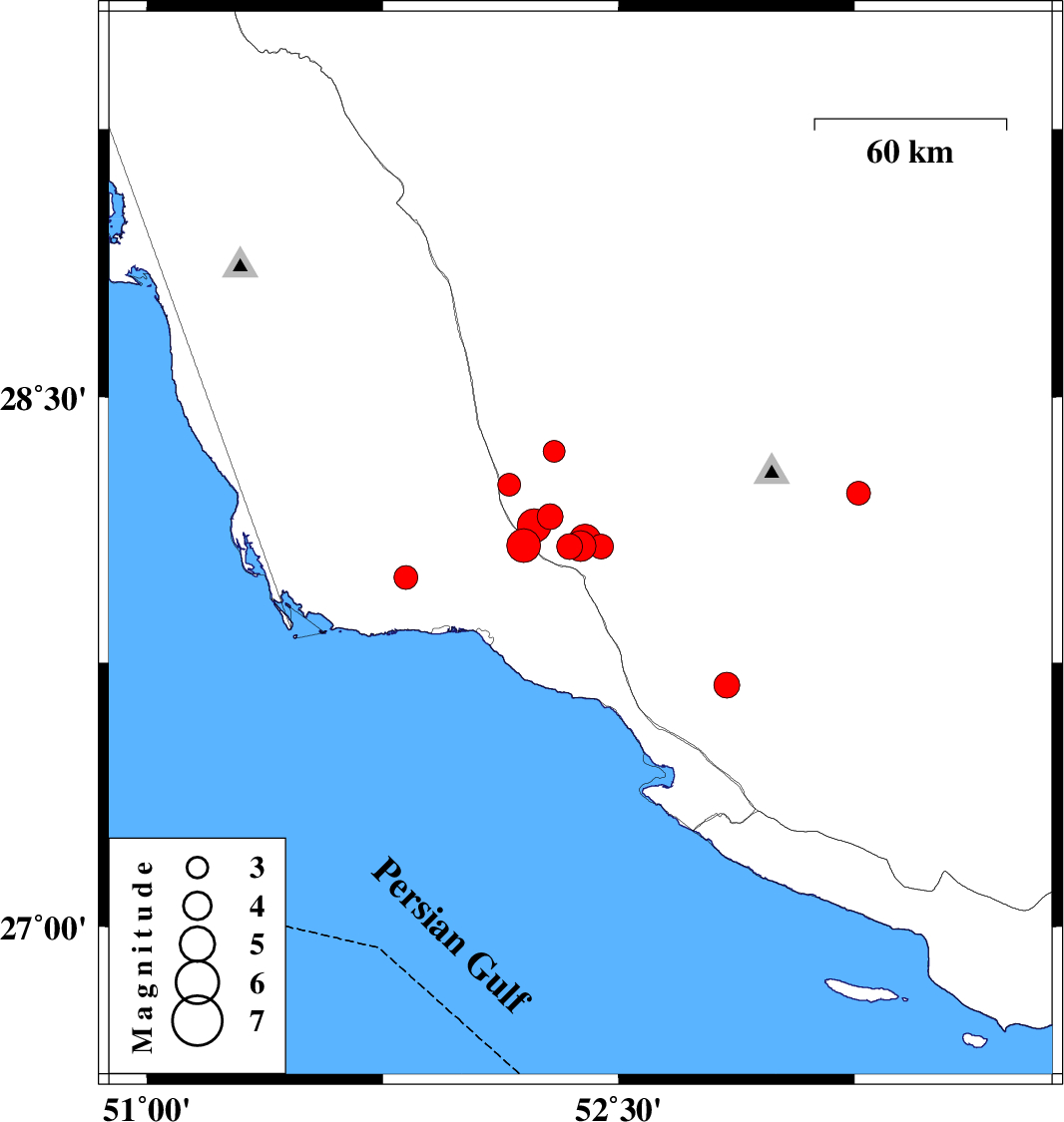 2025/01/30 06:06:46.2 09:36:46.2 27.99151.82412 ML3.4 Bushehr Province, 30 km North-West of Bandar-e kangan