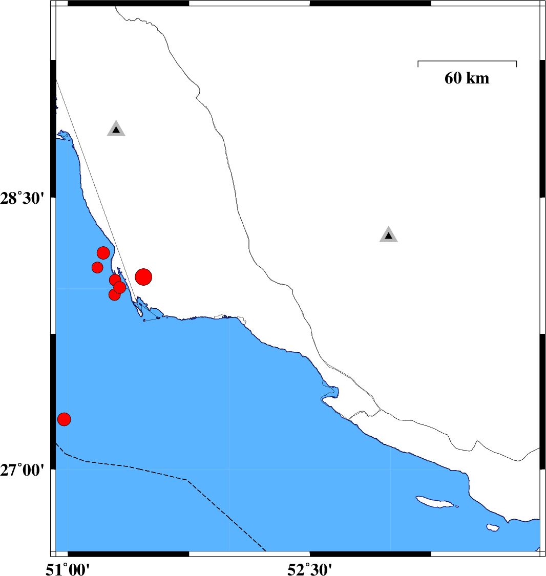 Persian Gulf, 30 km -West of Bandar-e kangan | |