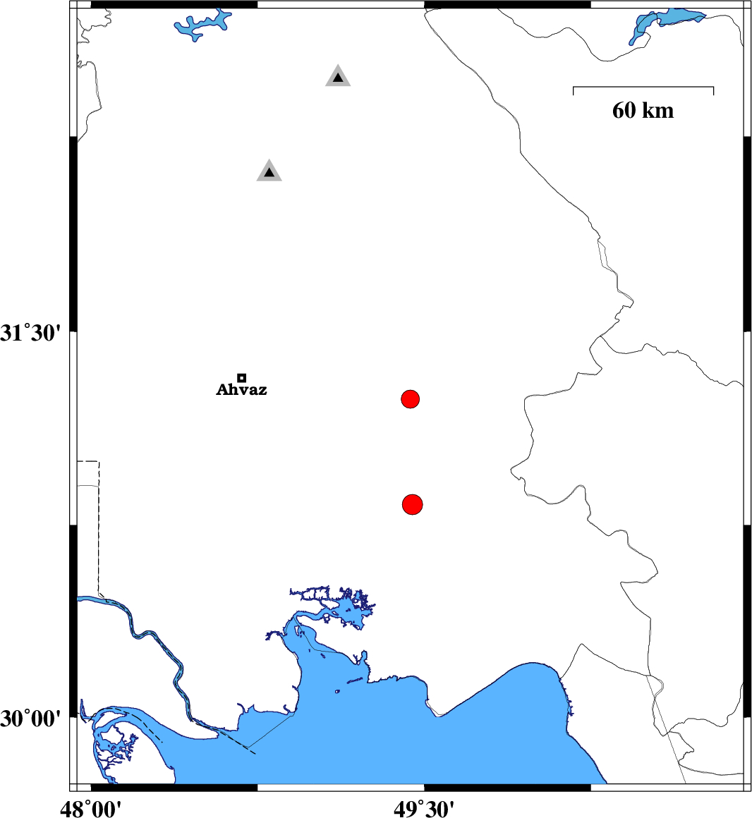 | 2025/01/30 | 08:37:40.9 | 12:07:40.9 | 30.83 | 49.446 | 14 | ML4.1 | Khoozestan Province, 26 km -West of Omidiyeh |