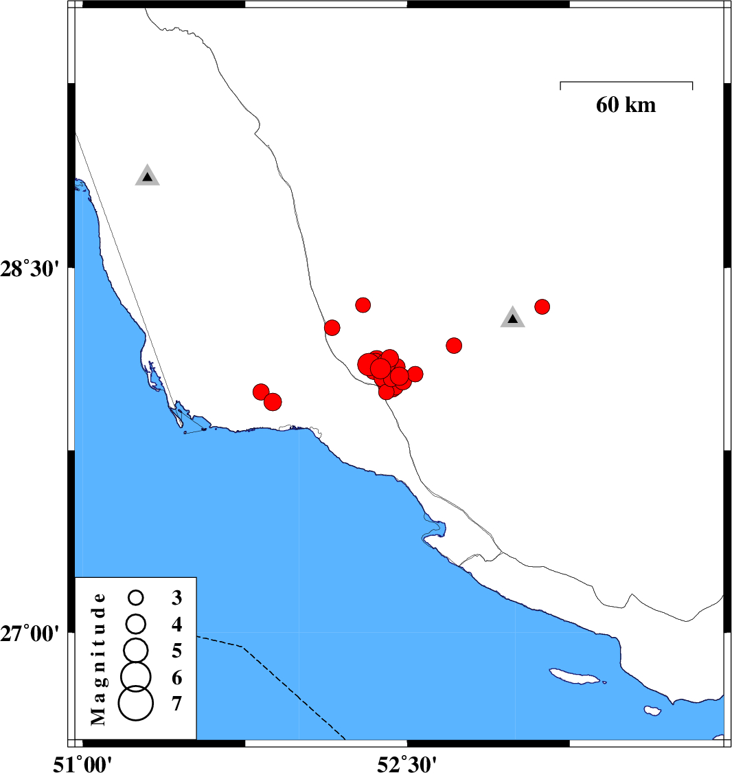 2025/01/30 12:51:05.7 16:21:05.7 28.0852.37912 ML4.4 Fars Province, 28 km North of Jam