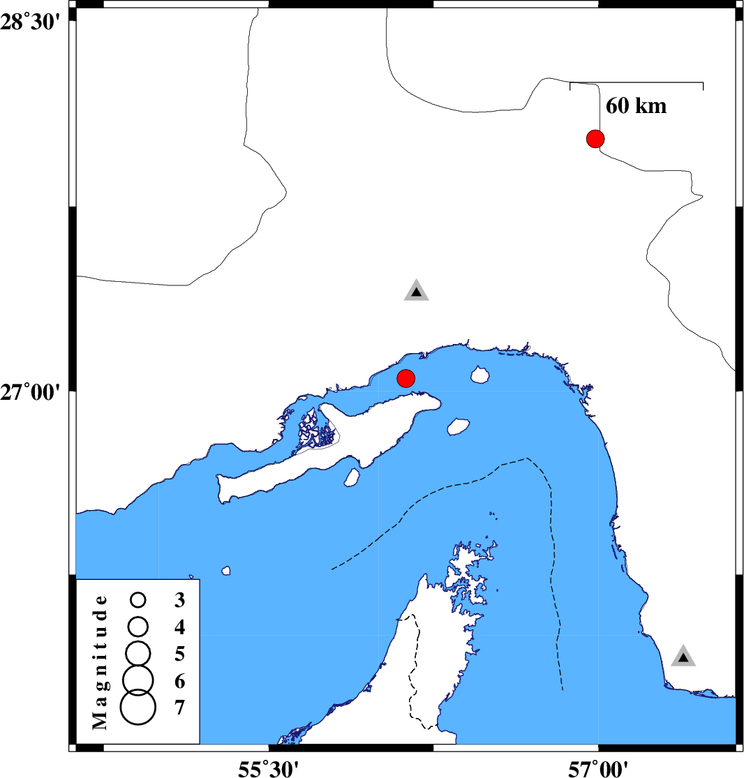 | 2025/02/09 | 07:29:40.0 | 10:59:40.0 | 27.052 | 56.124 | 12 | ML3.6 | Persian Gulf, 18 km -West of Qeshm | ||