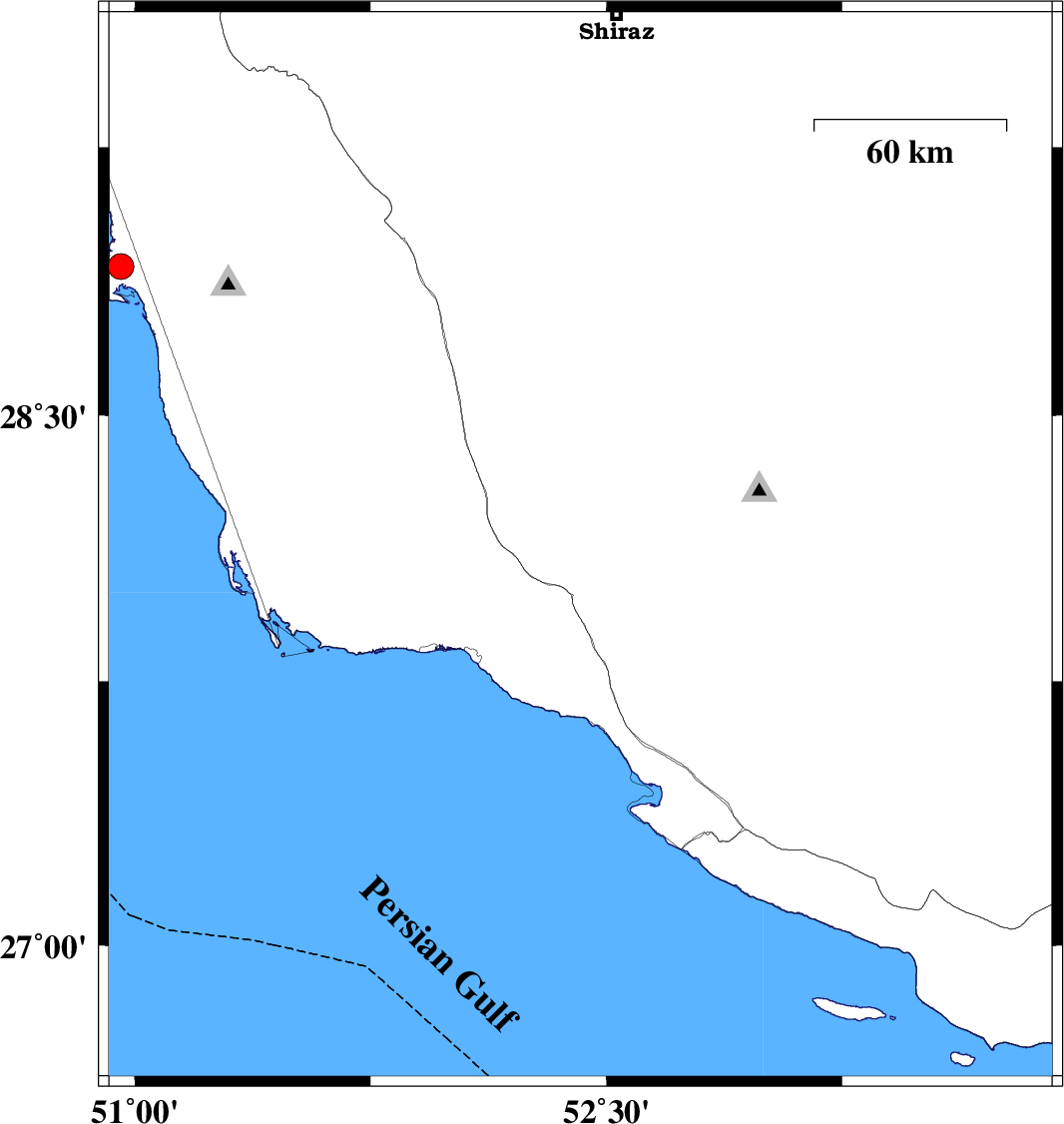 Bushehr Province, 23 km North-West of Bandar-e kangan | |