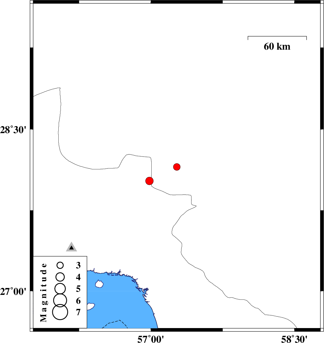 | 2025/03/01 | 17:45:26.6 | 21:15:26.6 | 28.152 | 57.271 | 12 | ML3.2 | Kerman Province, 47 km North-West of Kahnuj | ||