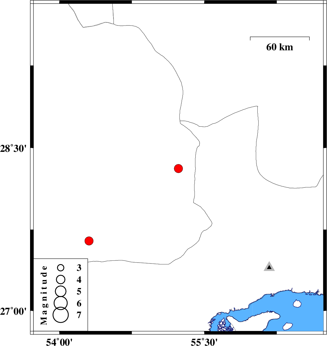 | 2025/03/01 | 20:16:46.0 | 23:46:46.0 | 27.645 | 54.306 | 12 | ML3.9 | Fars Province, 5 km of Lar | ||