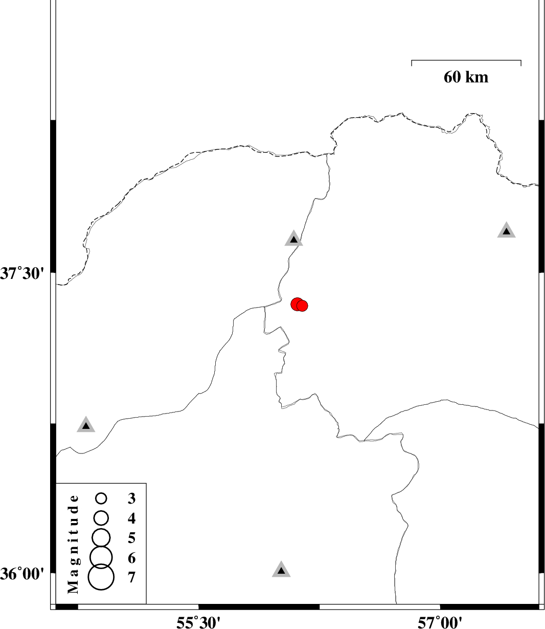 | 2025/03/05 | 21:04:28.5 | 00:34:28.5 | 37.335 | 56.143 | 16 | ML3.1 | Khorasan(north) Province, 48 km North-West of Jajarm | ||