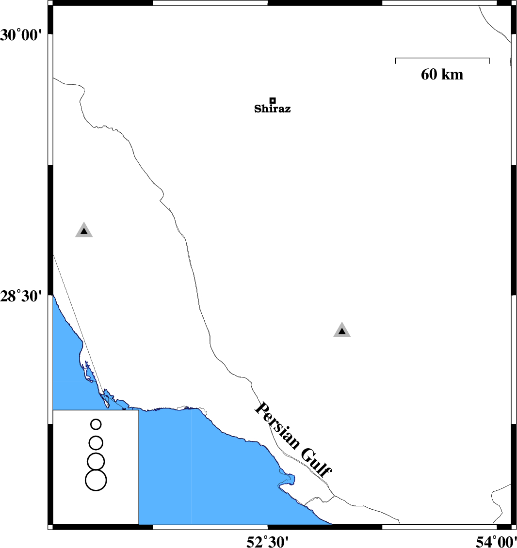 | 2025/03/08 | 23:25:20.1 | 02:55:20.1 | 28.663 | 52.594 | 12 | ML4 | Fars Province, 18 km South of Firuz Abad |