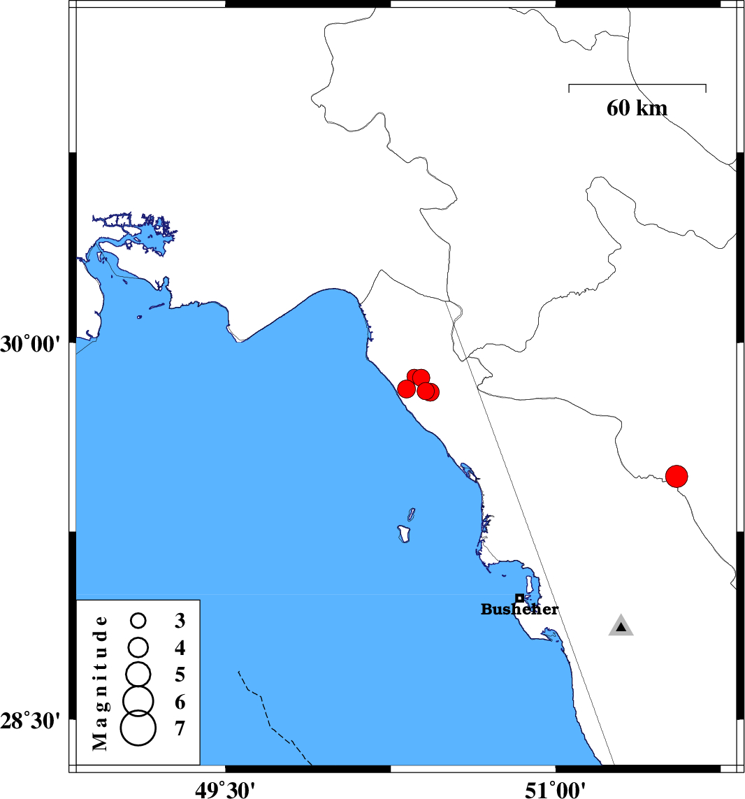 2025/03/09 14:13:42.5 17:43:42.5 29.86650.35712 ML3 Khoozestan Province, 36 km North-West of Bandar-e genaveh