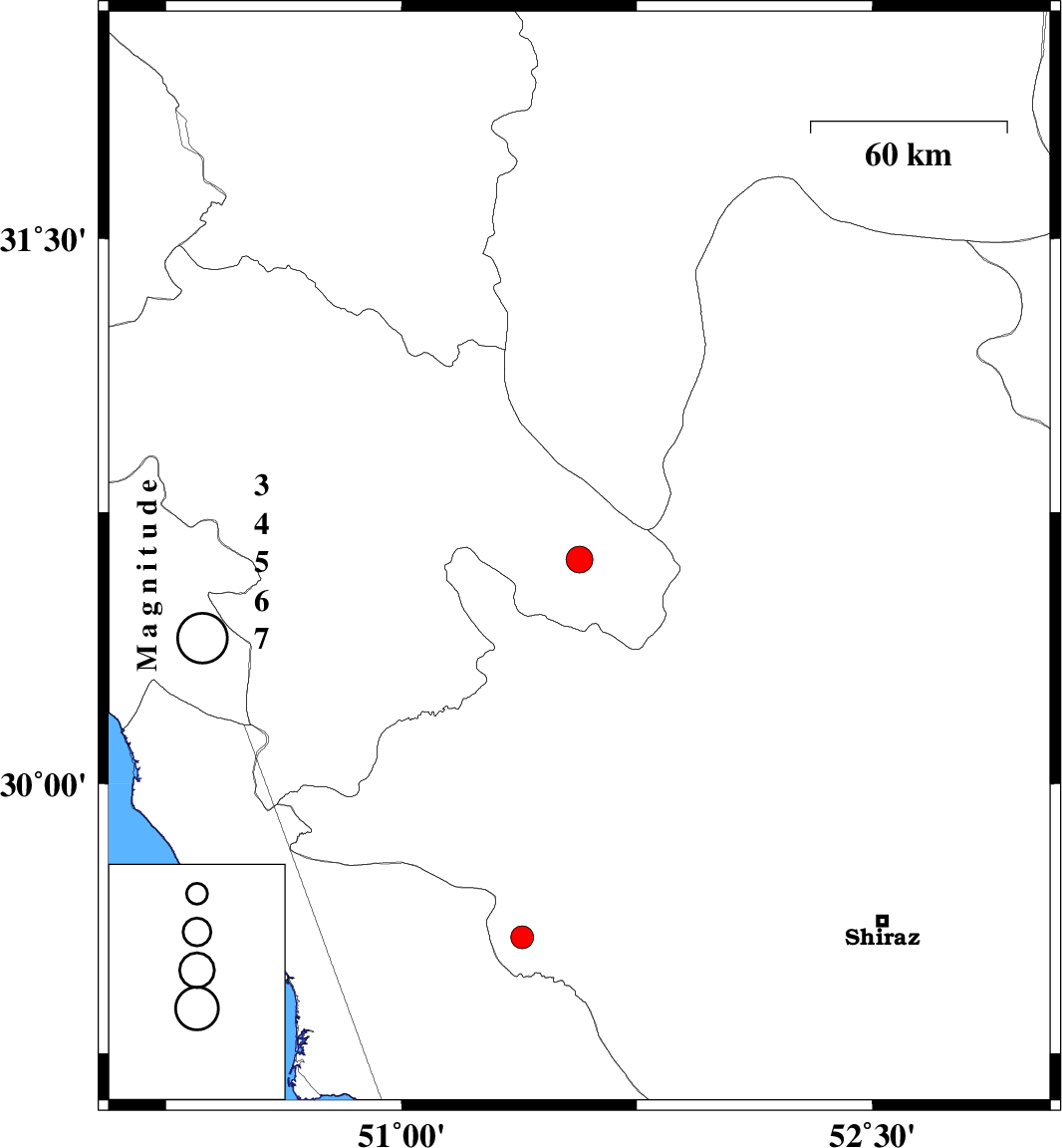 | 2025/03/16 | 12:00:07.1 | 15:30:07.1 | 29.573 | 51.384 | 12 | ML3.3 | Fars Province, 27 km -West of Kazerun |